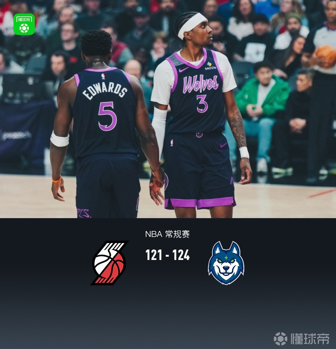 明尼苏达森林狼爱德华兹34分4板4助2断,麦克丹尼尔斯29分6板2助3断5帽,迪文琴佐19分1板4助2断。