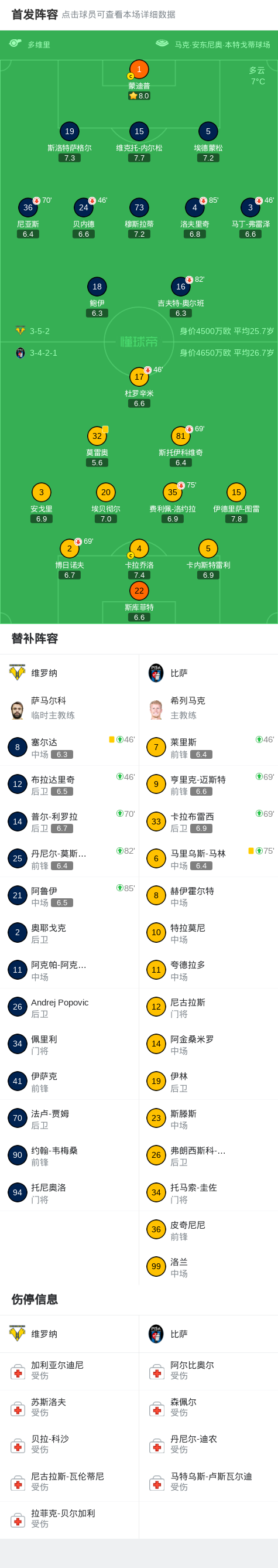 维罗纳0-0比萨,卡拉乔洛错失良机 足球新闻 2026-02-08 01:35 北京时间2月7日,意大利足球顶级联赛第24轮展开较量,维罗纳坐镇主场迎来比萨的挑战。全场比赛结束,双方均未取得进球,最终维罗纳0-0战平比萨。点击查看本场比赛详细数据>>点击查看意甲完整积分榜>> 球队阵容 技术统计 上一条:洛杉矶FC官方:波尔图29岁中场埃斯塔基奥租借加盟,含买断选项 下一条:罗马诺:达成协议,格拉茨风暴租借引进维拉U21前锋罗里·威尔逊