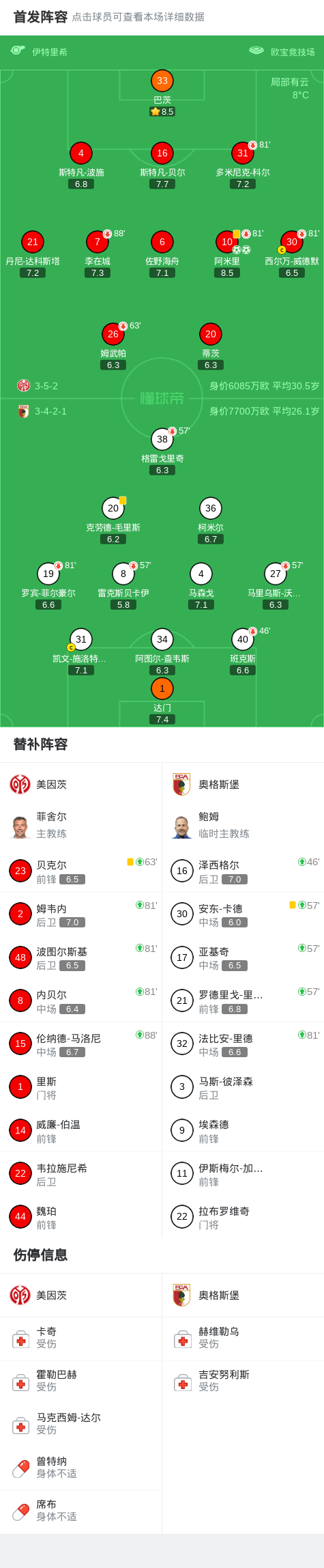 美因茨2-0奥格斯堡,阿米里独中两元 足球新闻 2026-02-09 01:43 北京时间2月7日德国足球顶级联赛 联赛 第21轮,美因茨主场对阵奥格斯堡。美因茨阿米里梅开二度。最终比分美因茨 2-0 奥格斯堡。点击查看本场比赛详细数据>>点击查看德甲完整积分榜>>精彩瞬间第8分钟,美因茨球员阿米里罚入点球。第80分钟,美因茨球员阿米里罚入点球。 球队阵容 技术统计 上一条:听牌了!蓄发哥:这是我开始挑战后首次四连胜,卡里克太感谢你了 下一条:布雷斯特vs洛里昂:阿若克、拉斯卡里首发,班巴-迪昂、姆沃戈出战