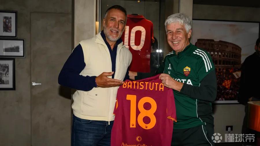 阿根廷传奇巴蒂斯图塔近日造访了特里戈里亚——罗马俱乐部的训练基地,这是他20多年来首次回到这里。这位曾帮助罗马夺得队史第三座意甲冠军的名宿,在2000年至2003年间效力于罗马,共出场87次,打入33球。