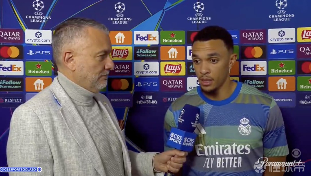 欧冠淘汰赛附加赛首回合,皇马客场1-0战胜本菲卡,阿诺德赛后接受了CBS体育的采访。
