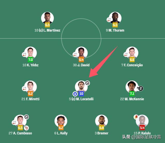 与此同时,很多的数据统计机构,将全场最佳评给了另一名球员:这就是尤文队长洛卡特里。甚至有机构给了他10分的满分。