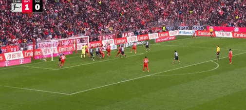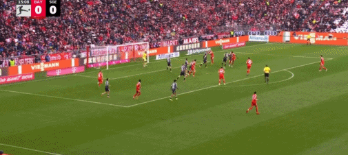第16分钟,帕夫洛维奇禁区外远射破门,拜仁1-0法兰克福。