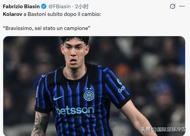 完场前,齐沃将巴斯托尼换下。在铁卫离场时,国米助教科拉罗夫对他大喊“干得好,你真的是个冠军球员!”